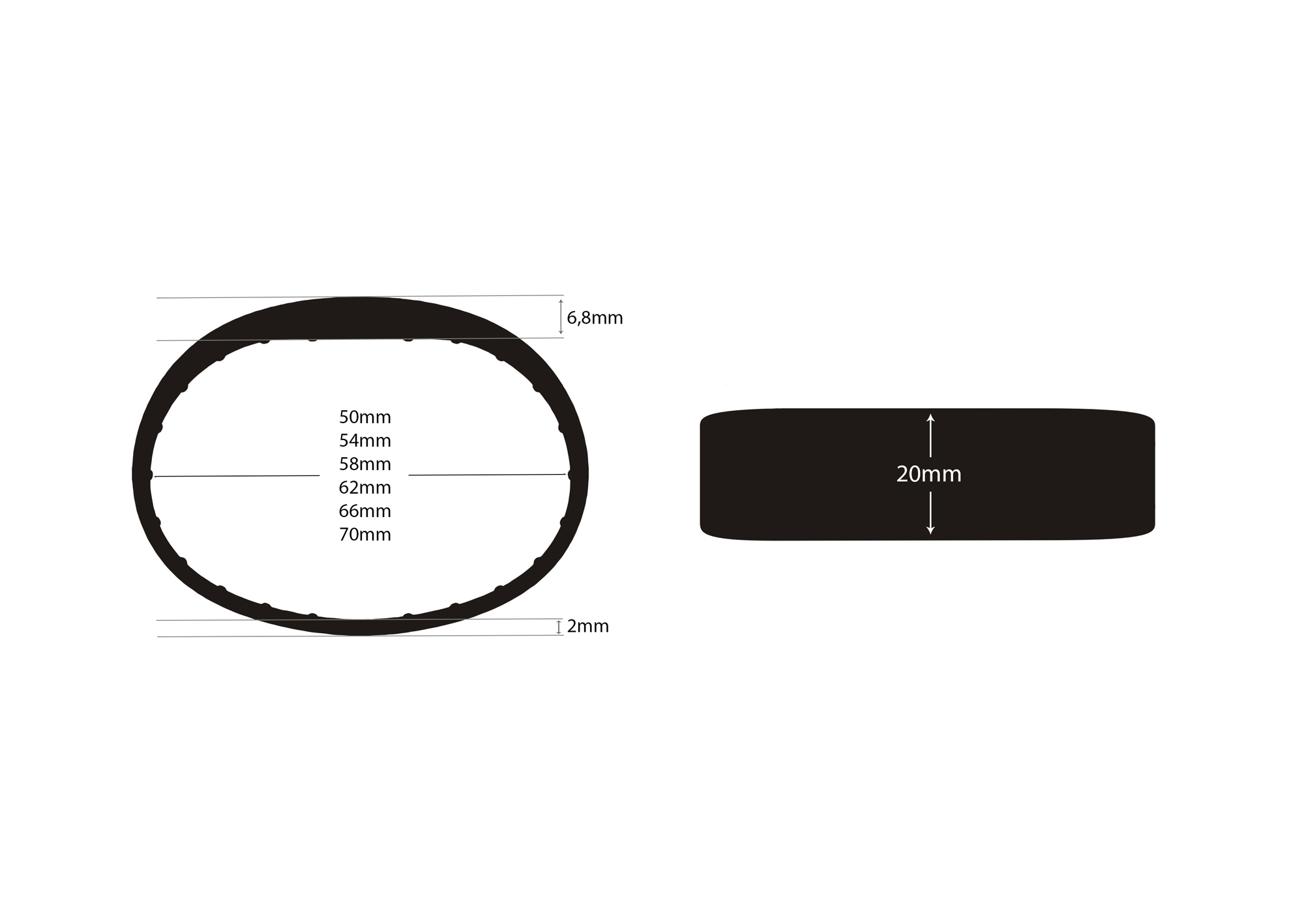 50mm (157mm) bis 70mm (220mm) |